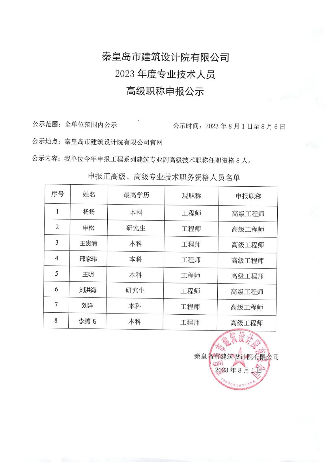 2023高級職稱公示